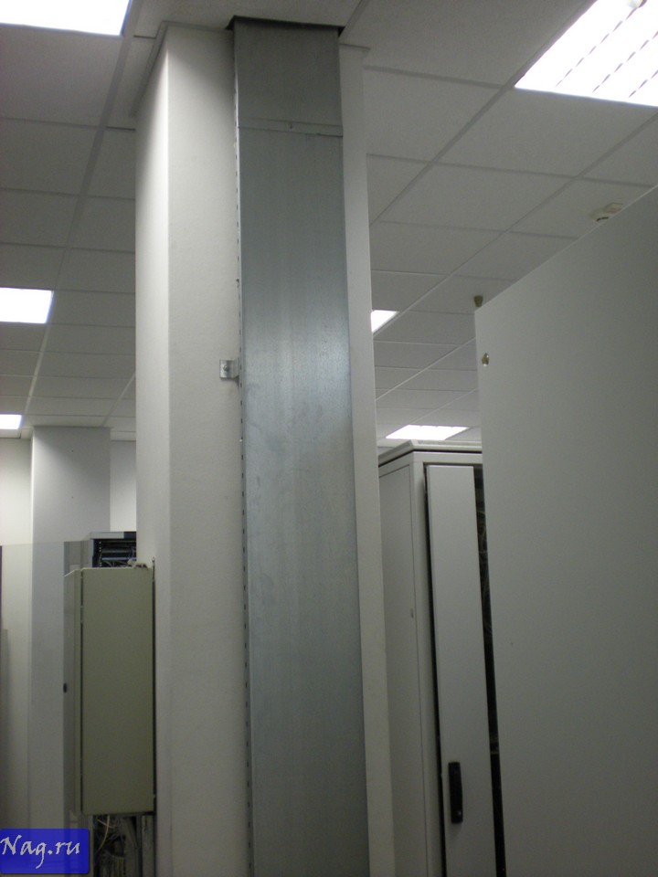 Рядом со стойками стоит колонна - в нее и "вбит" держатель для кабелей, которые идут от антенного поля. Ничего не поделаешь - надо лезть на крышу. А там ливень и холодно.