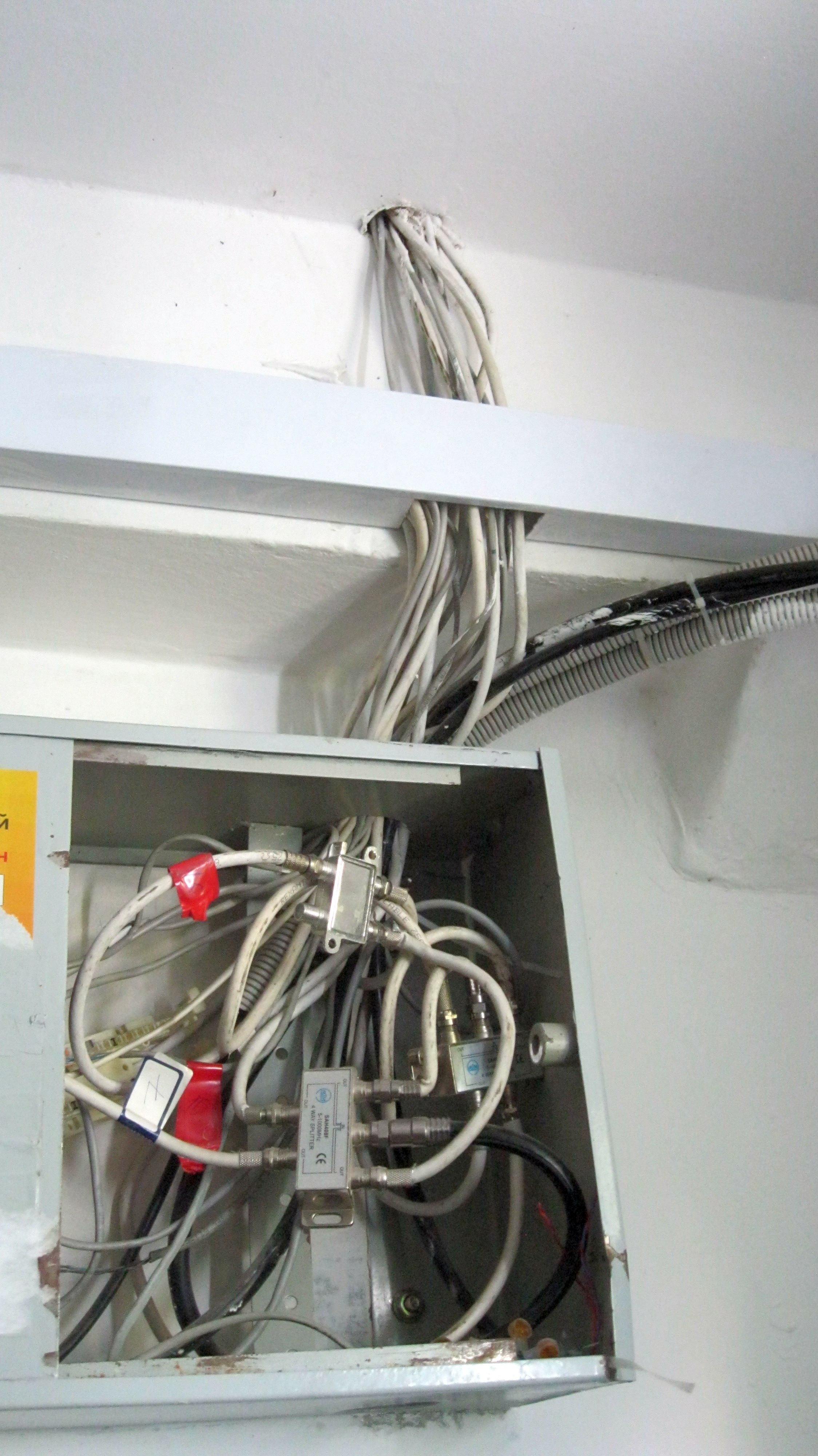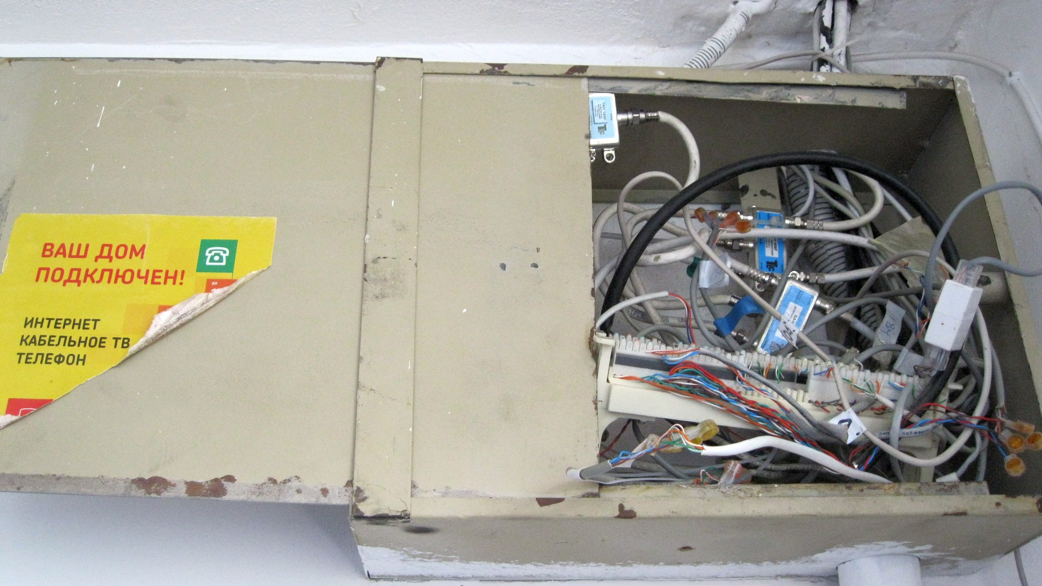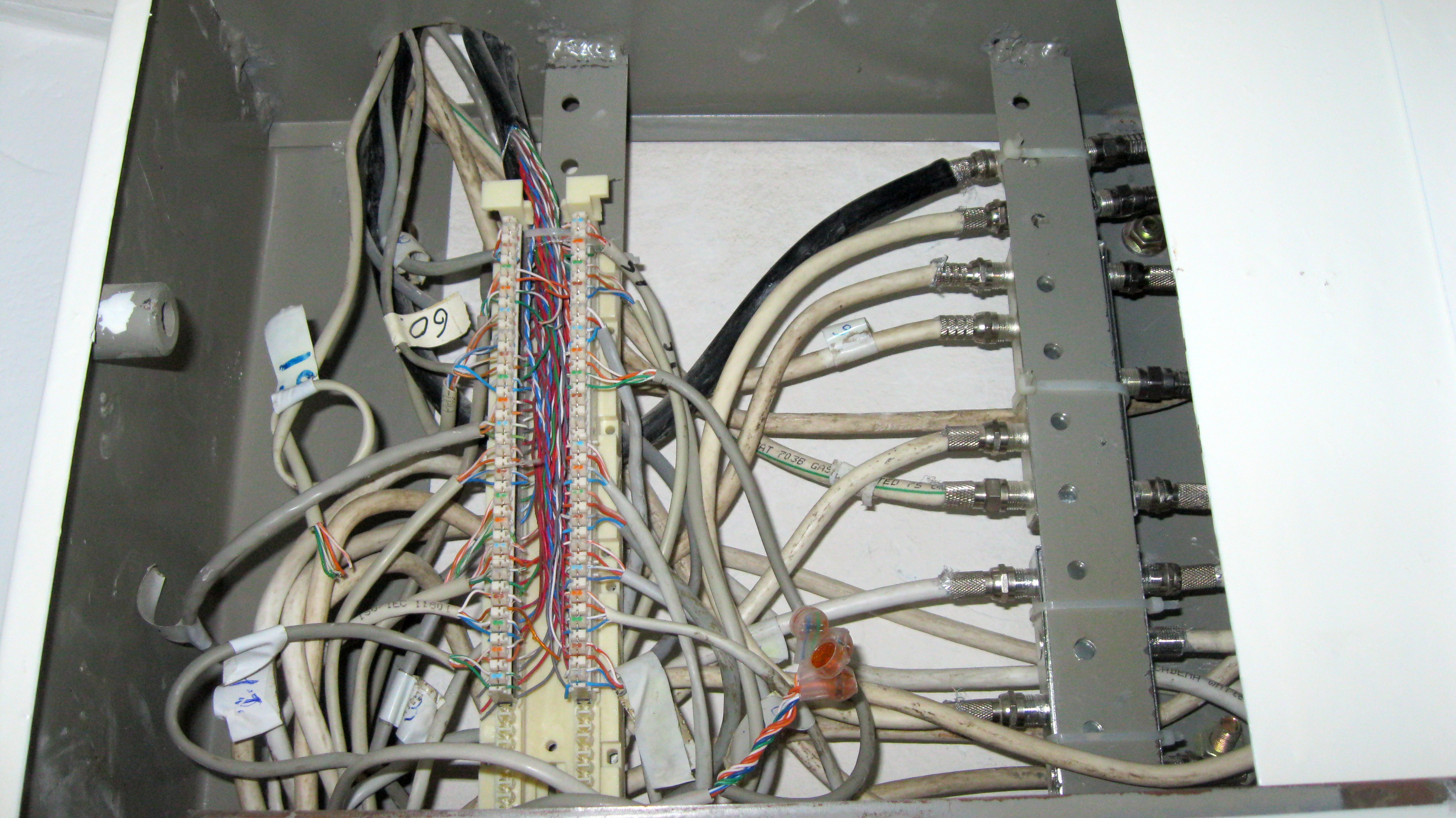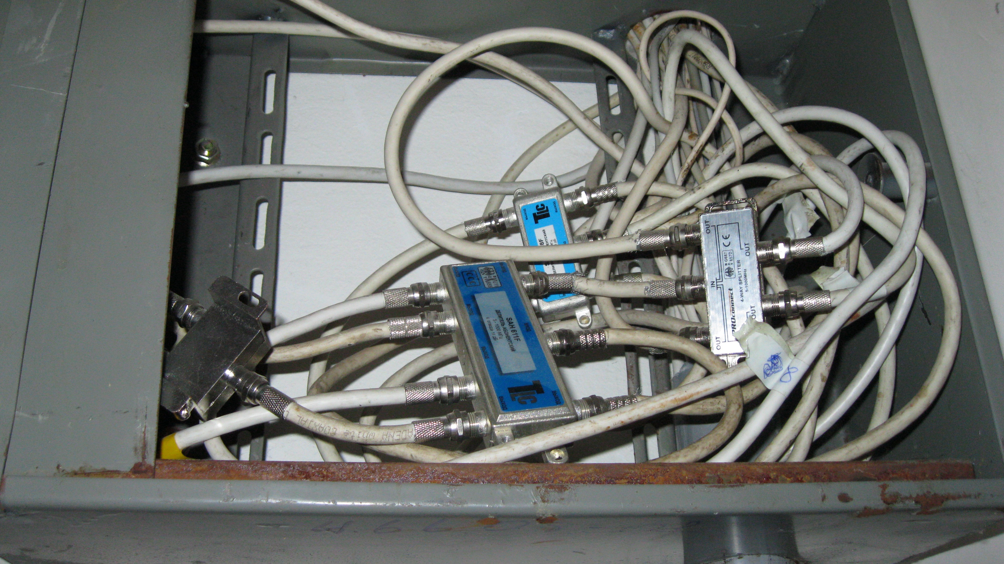 А чего там больше всего фоток разветвителей ктв и прочего коаксиала ? Каким местом это к интернету имеет отношение ? Никоим образом кабельный провайдер инета в щитках делать не сможет, разве что хаб-медиаконвертер в этажный шкаф засунет. Ломаные трубы, лапша из utp - возможны. Но такую хрень обычные инетовцы сотворить не могут.
