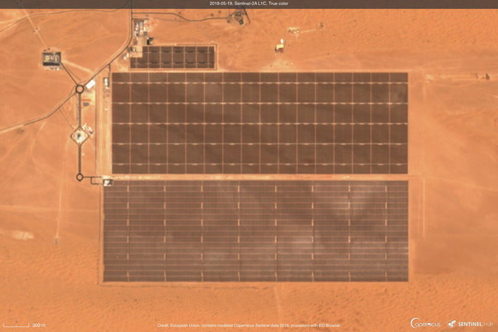 На объекте насчитывается 2,5 млн солнечных панелей, электричества от которых хватит на 750 тыс. человек. Панели ежедневно очищаются роботами, которые сами тоже заряжаются от солнечной энергии.