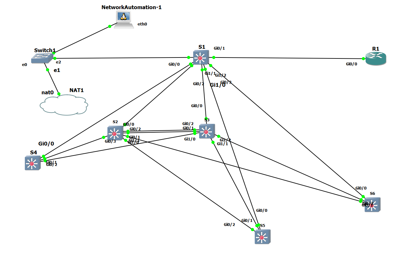1. Host-машина в виде Docker Container - "Network Automation". Этот предустановленный объект есть в GNS3, в нем содержатся необходимые пакеты для автоматизации, в том числе Python3.